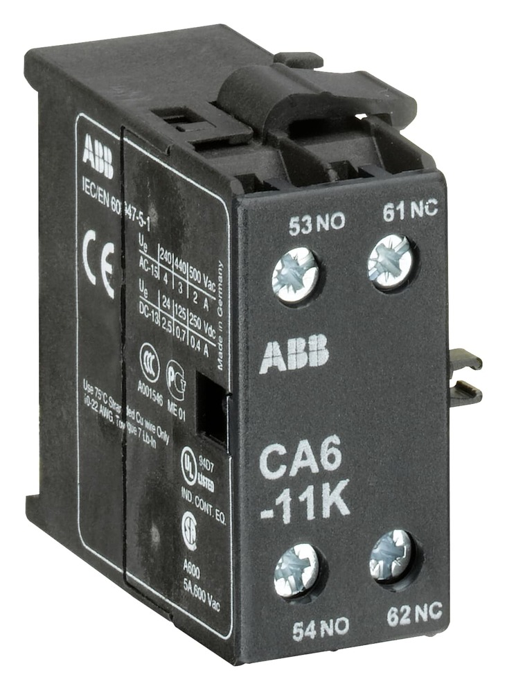Вспомогательный контакт ABB CA6-11K: 1NO/1NC, screw terminal, side mounted