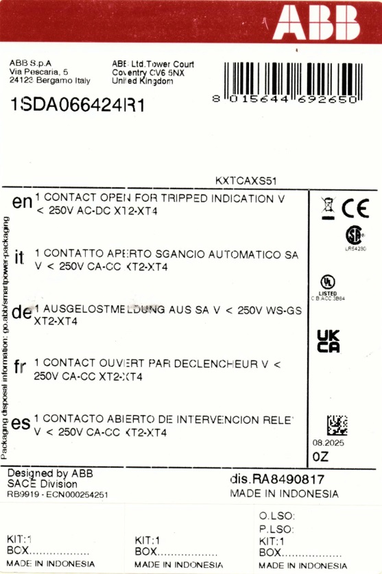 1 CHANGEOVER CONTACT FOR TRIPPED INDICATION 250V AC-DC XT2-XT4