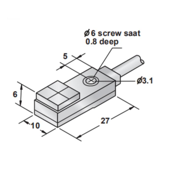 Индуктивный бесконтактный датчик серии LKF08, прямоугольный, рабочая зона сбоку, 10…30 VDC, NPN NO, Sn=2 мм.
