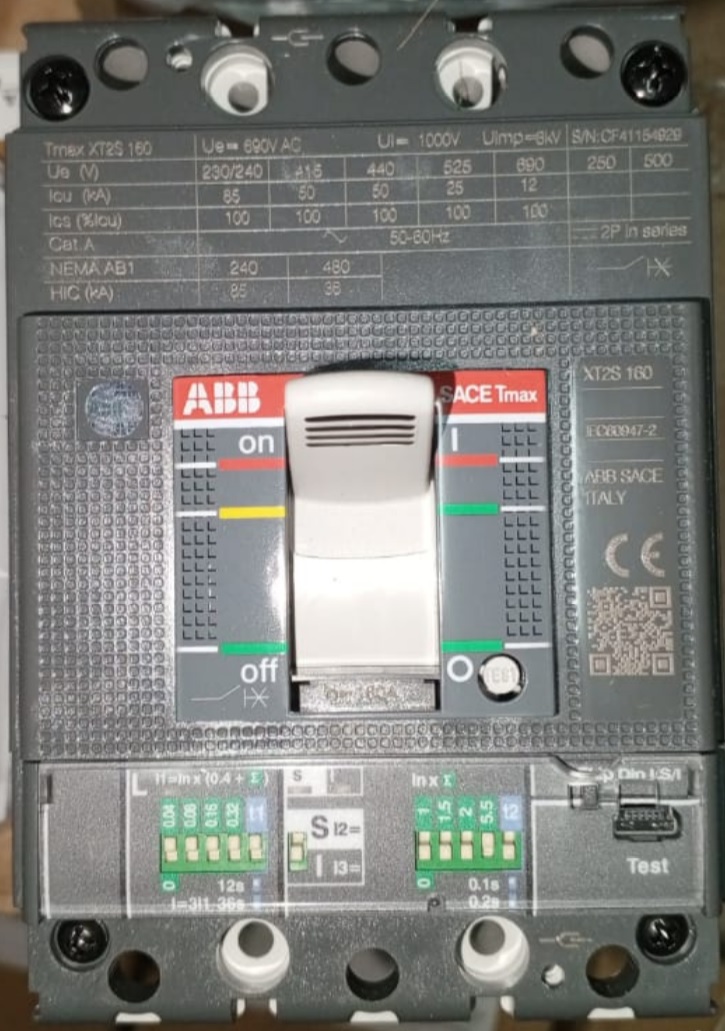 C.BREAKER TMAX XT2S 160 FIXED THREE-POLE WITH FRONT TERMINALS AND SOLID-STATE RELEASE IN AC EKIP DIP LS/I R 160 A