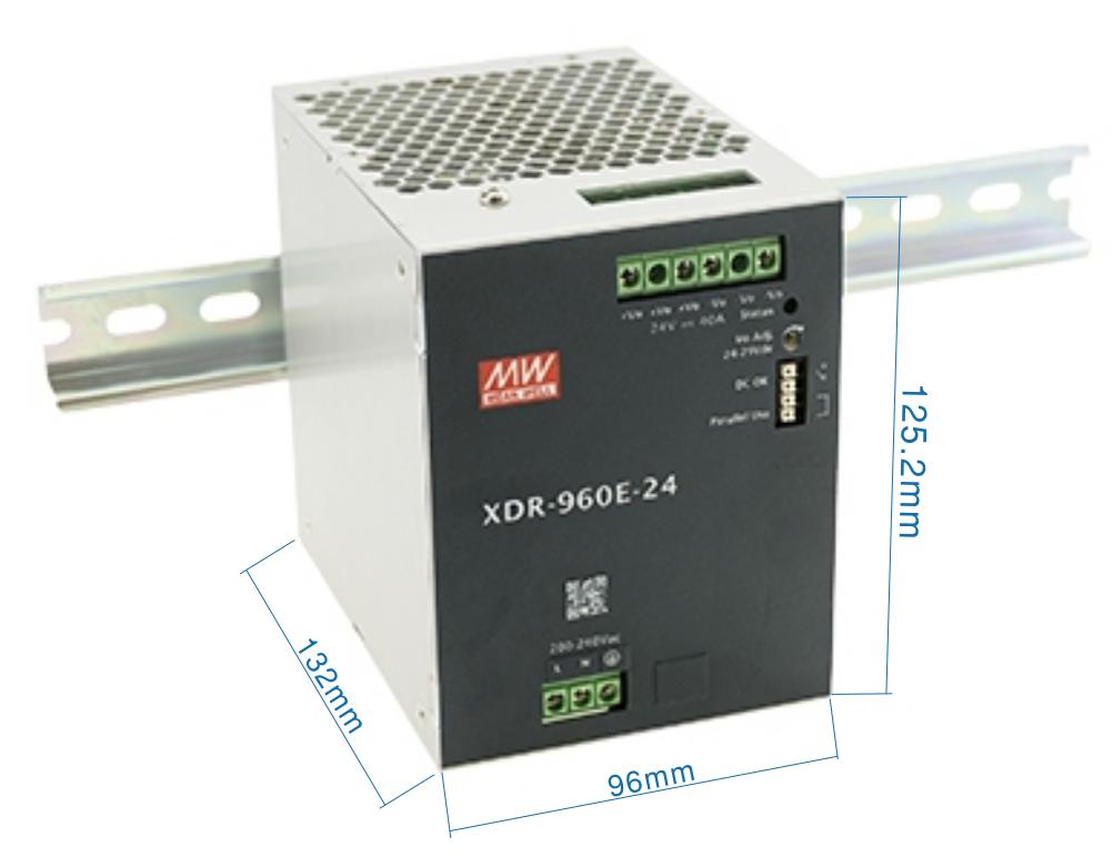 XDR-960E-24 — это высокомощный источник питания промышленного класса, обеспечивающий ток до 40А при стандартном напряжении 24В. Устройство выполнено в ультратонком корпусе шириной всего 96 мм, что делает его одним из самых компактных решений в сегменте 1 кВт для монтажа на DIN-рейку.
